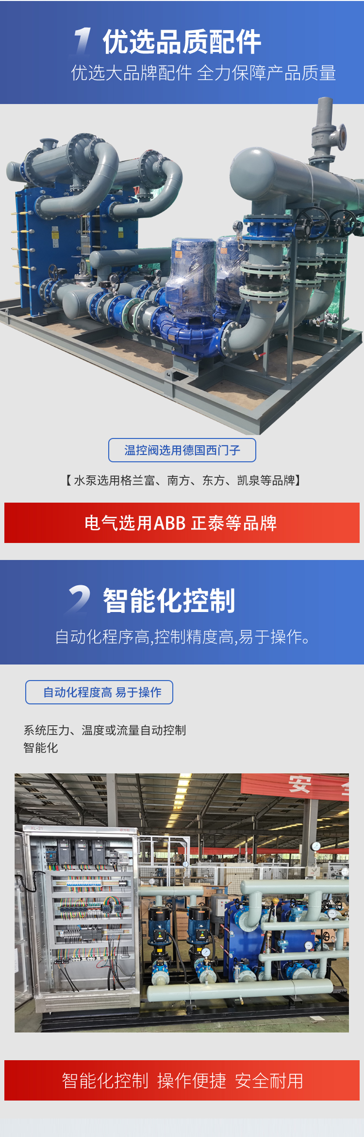 公司長(zhǎng)期供應(yīng)定制:換熱器、換熱機(jī)組、供水設(shè)備、水處理設(shè)備、過(guò)濾除污設(shè)備、水箱、冷卻塔及其他冷暖設(shè)備。公司致力于以政府機(jī)關(guān)、企業(yè)、商場(chǎng)、醫(yī)院、學(xué)校、家庭為一體,提供一站式冷暖/水處理項(xiàng)目解決方案。
